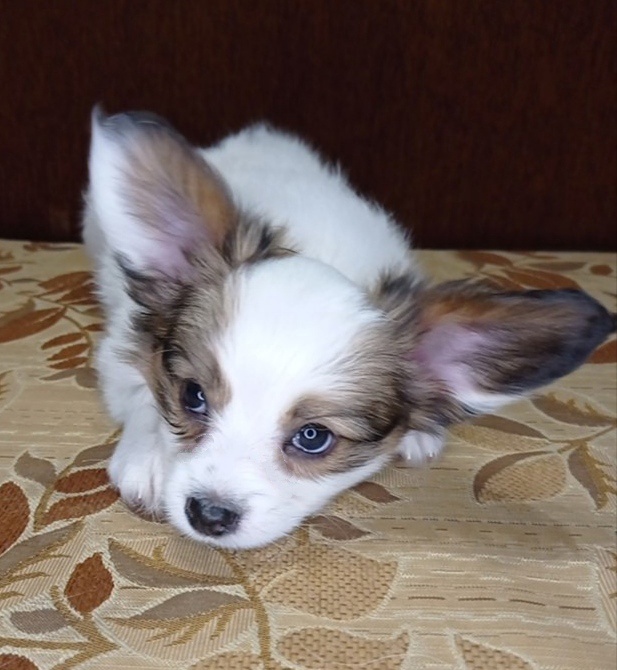 Кобель бело-соболиный Милон зэ брайт сан / Milon the bright sun Клеймо есть, сделана первая вакцинация. Зубы норма, семенники норма. Пригоден для выставочной и племенной карьеры. Щенок очень ласковый, энергичный, как и все папийоны, любознательный, любит ручки и общение с человеком. Родители имеют интересную и титулованную со всех сторон родословную. Общие линии мамы и папы известных питомников Швеции, Германии, Японии, Америки, Люксембурга.